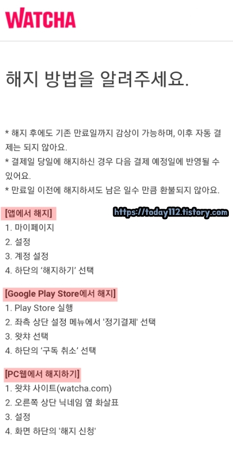 참고로 왓챠 해지 시 남은 일수만큼 환불받는 것은 불가능합니다.