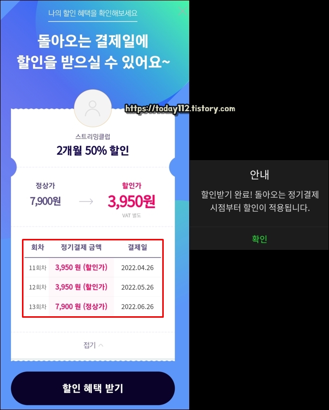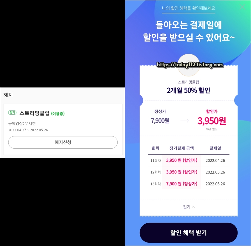 환불 조건이 되지 않는다면, 앞으로 자동 결제가 되지 않도록 '자동 결제 해지'라도 해놔야 하는데요. 가끔 자동 결제 해지 시 2개월 50% 할인 혜택으로 해지 방어를 하는 경우도 있으니 참고하시길 바랍니다.