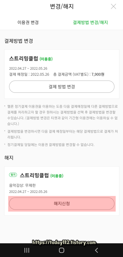 멜론 이용권 정기결제 해지방법