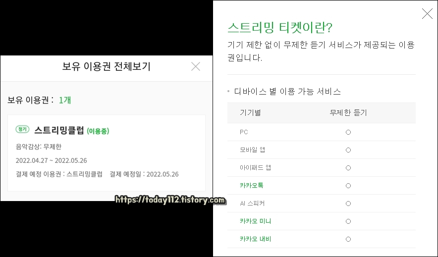멜론의 간판 이용권 '스트리밍클럽'. 해당 이용권은 PC, 스마트폰, 태블릿, 카카오톡, AI 스피커, 카카오 미니, 카카오 내비 거의 모든 기기에서 이용 가능한 이용권입니다.