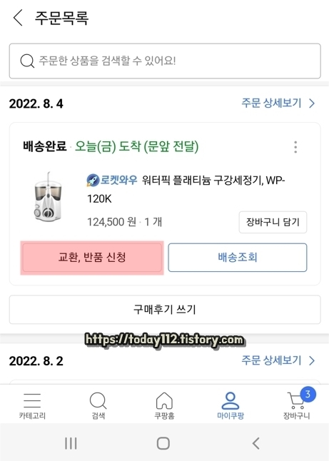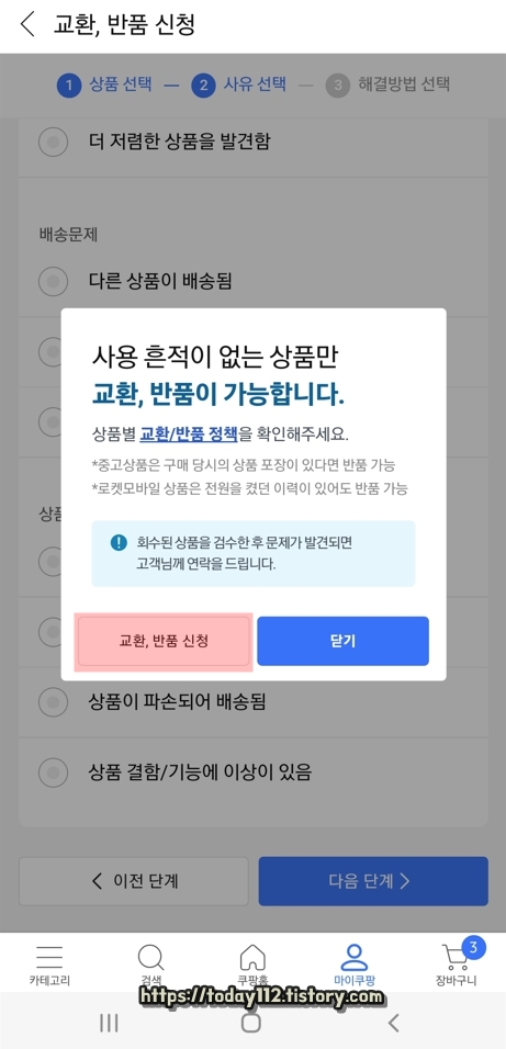 쿠팡 교환 및 반품 신청은 물건 사용 흔적이 없는 상품만 가능합니다.