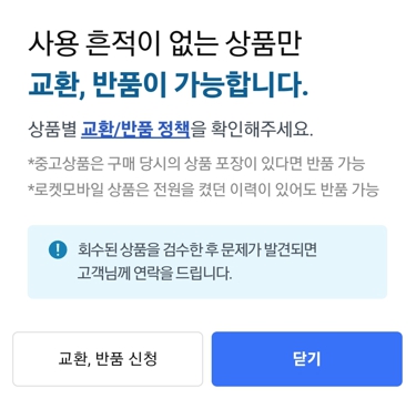 ※ 로켓 모바일 상품은 전원을 켰던 이력이 있어도 반품 가능.
