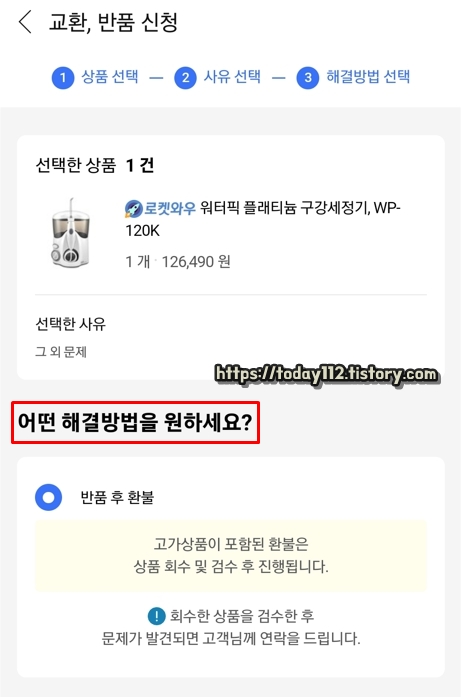 반품 처리 방법(반품 후 환불)을 확인해줍니다.