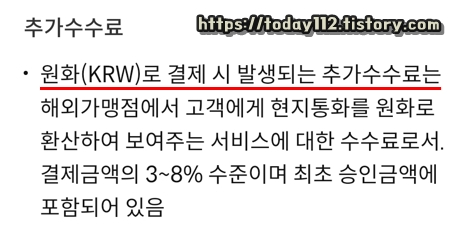 원화로 표시되어있는 상품을 해외 사이트 같은 곳에서 구매하게 되면, 추가적으로 발생되는 수수료가 있기 때문에 결제하는 사람에게는 큰 손해입니다. 그렇기 때문에 해당 서비스는 누구든 필수로 신청을 해야 하는 서비스죠.