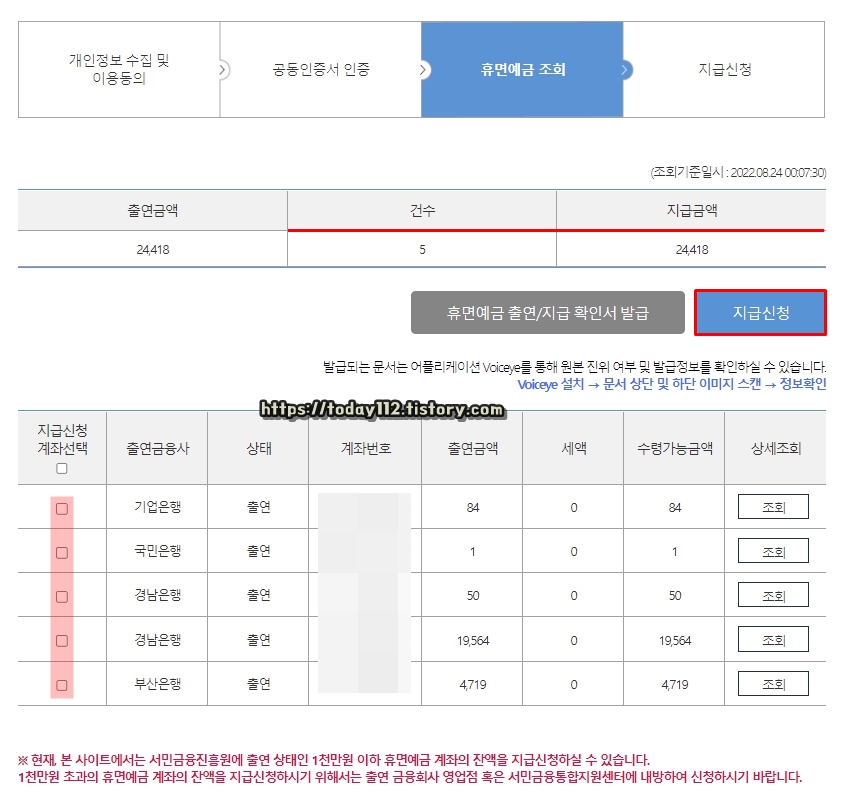 휴면 예금 조회 및 지급 신청 방법