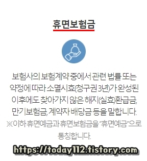 휴면 보험금은 보험 계약자가 보험료 납입 연체, 보험 해약, 보험 만기 등으로 발생한 환급금을 2년 안에 찾아가지 않아 보험 계약자의 청구권이 완전히 소멸된 보험금을 말합니다. 보험 계약자의 청구권만 소멸될 뿐이지 돈은 보험 회사에서 보관하고 있기 때문에 어차피 보험 계약자에게 돌아갈 돈입니다. 즉, 잠자고 있는 돈이죠.