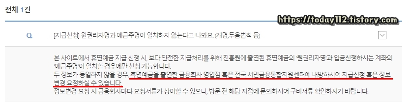 최근 개명을 해서 예전에 쓰던 휴면 계좌 예금주와 일치하지 않는다면, 휴면 예금이 나온 은행 영업점 방문 또는 서민금융통합지원센터 방문을 통해 지급 또는 예금주 변경 신청을 해야 합니다.