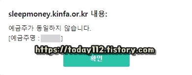 만약 입력한 계좌 정보가 휴면 예금 계좌 예금주와 일치하지 않는다면, 휴면 예금 잔액 지급 신청이 불가능합니다.